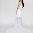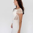 The Priscilla wedding dress by Kotapska is the perfect blend of femininity, elegance, and soft boho charm. In a timeless off-white shade, its flattering silhouette beautifully highlights your figure. The mix of sleek textures and refined, minimalist lace creates a chic and modern contrast. Delicate lace cap sleeves add an ethereal touch. The floor-length skirt is finished with a light, airy train for an effortlessly graceful feel. Priscilla is made for the bride who dreams of style, lightness, and subtle boho originality. The dress fastens easily with a zipper, and it’s incredibly lightweight and exceptionally comfortable.