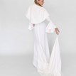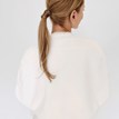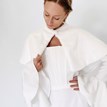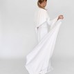 The faux fur bridal bolero keeps brides beautifully warm during the cooler season. It comes in a soft cream shade, features a small collar, and has a chic cropped length. Lightweight and practical, it fastens at the front with two hook closures at the top.