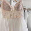 The stunning Crystal princess wedding dress is designed for a bride who loves sparkle and glamour style. The fitted strapped bodice features built-in cups and deep feminine necklines, with the front and side sections filled with nude tulle. Its intensely shimmering embellishment of sequins, beads, pearls, and glitter cannot go unnoticed. Unlike the photos shown, the top of the dress has a very soft apricot shade that beautifully complements the skin tone (see last photo). The gathered off-white skirt with a subtle train has voluminous underskirts and a top layer with a rich shimmering texture. The dress fastens with a zipper and is slightly heavier due to the embellishment. It is brand new :)